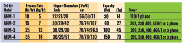 ■ AHM-1 dryers include our ELC controller which includes set and actual temperatures